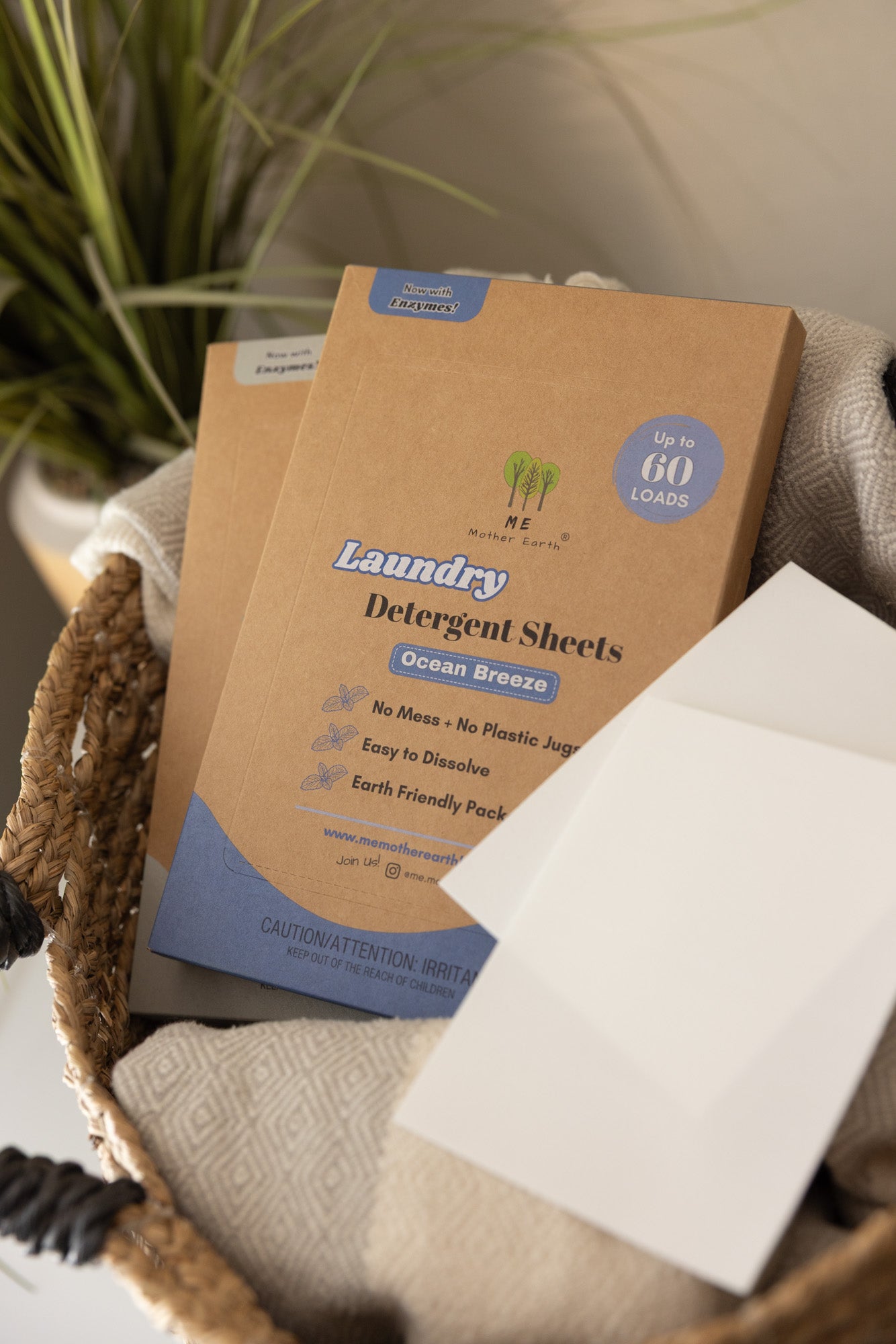 Eliminate the plastic detergent jug plus carbon emissions all in one! Each detergent sheet comes perforated - just tear and toss in the wash depending on your load size. It’s so easy to use, you might just do more laundry! Dissolves in either cold or hot water, and works in both regular and HE machines.