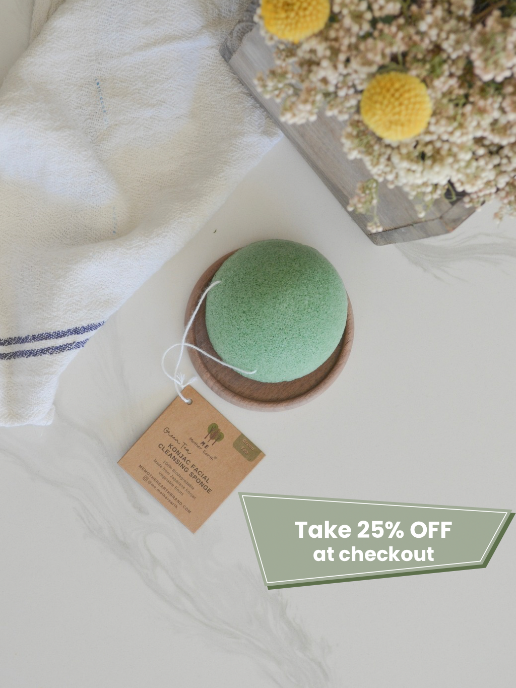 Our VEGAN Konjac Sponges are all natural, made from Japanese Konjac vegetable roots and enriched with green tea for antioxidant benefits that protects skin from damaging free radicals.