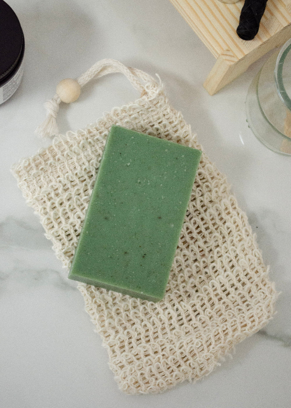 Natural Soap Bar - Herb Garden: Essential oils of lavandin, rosemary, patchouli, lemongrass, and thyme will invigorate your senses while ingredients like chlorophyll and cloves are naturally anti-inflammatory. Ingredients: saponified oils of sunflower*, coconut*, palm*, and safflower* (with retained glycerin); water; essential oils of lavandin, rosemary, patchouli, lemongrass, thyme, and clove bud; chlorophyll; cloves*; rosemary extract. * organic ingredient