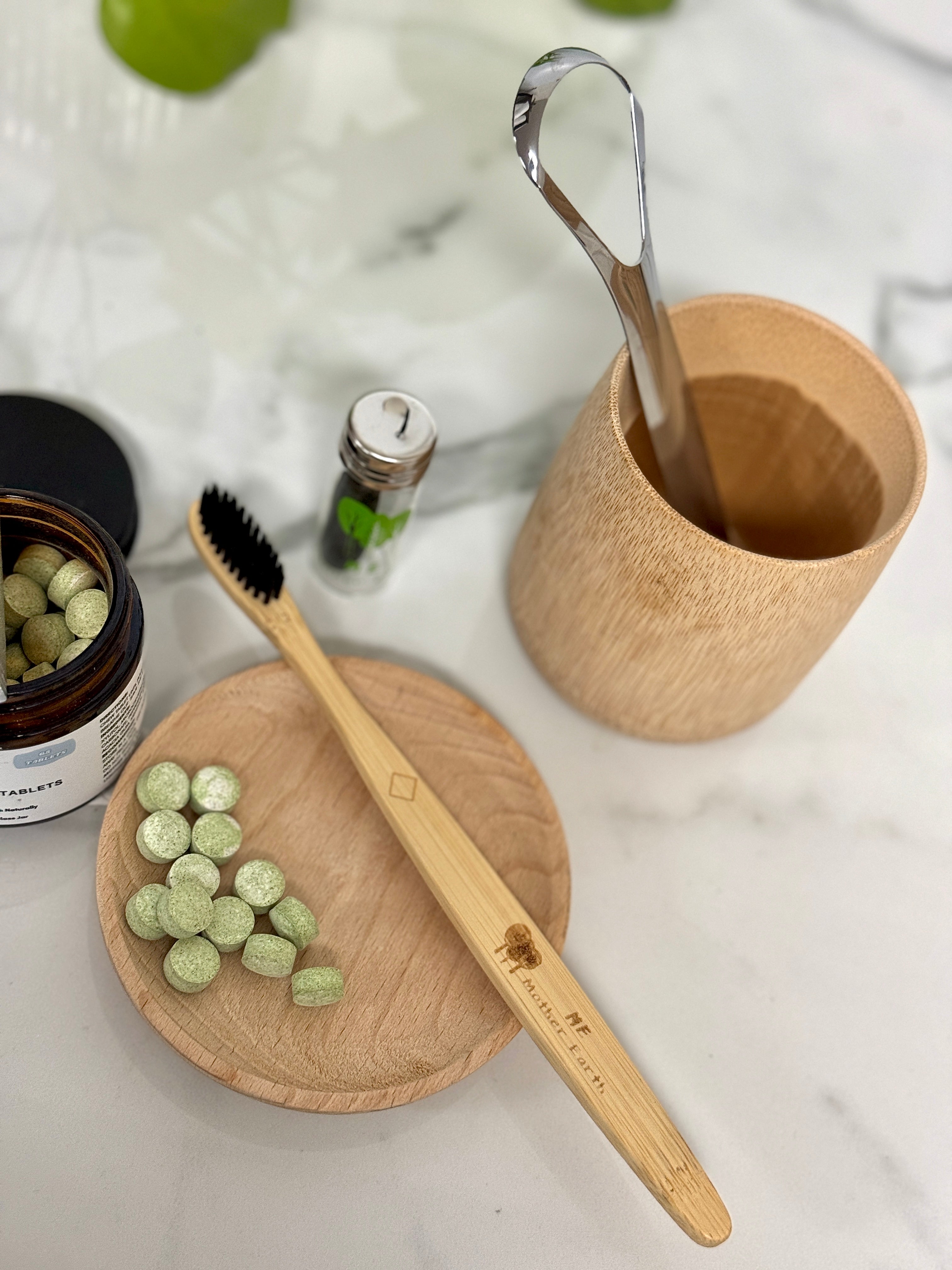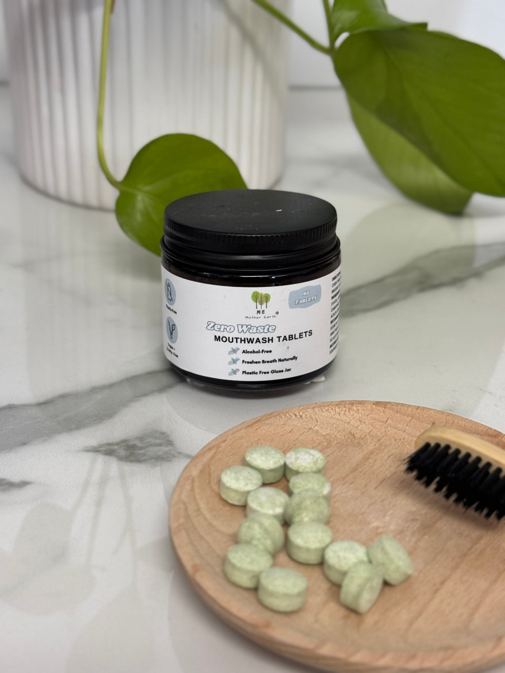 Meet the newest upgrade to your oral care routine: natural, alcohol-free mouthwash tablets in a reusable amber glass jar—100% plastic-free, vegan, and perfect for travel. Fresh breath without the plastic waste.
